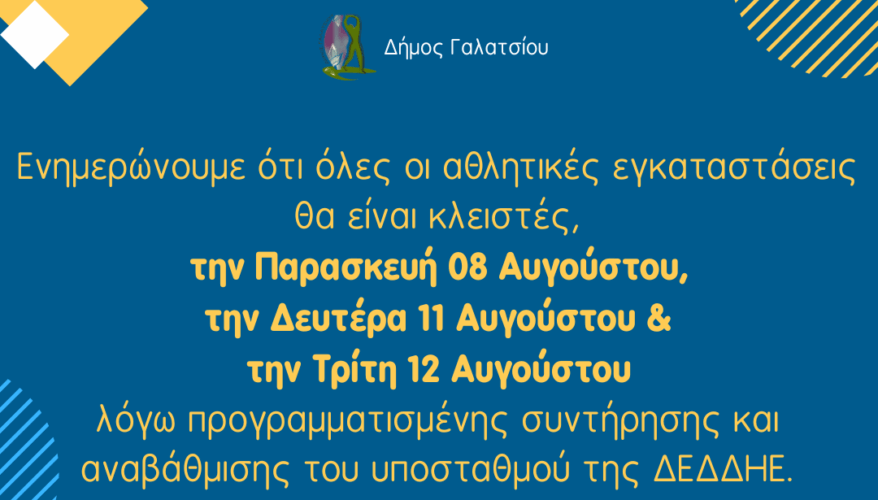 Σας ενημερώνουμε ότι όλες οι αθλητικές εγκαταστάσεις του Δήμου θα παραμείνουν κλειστές: