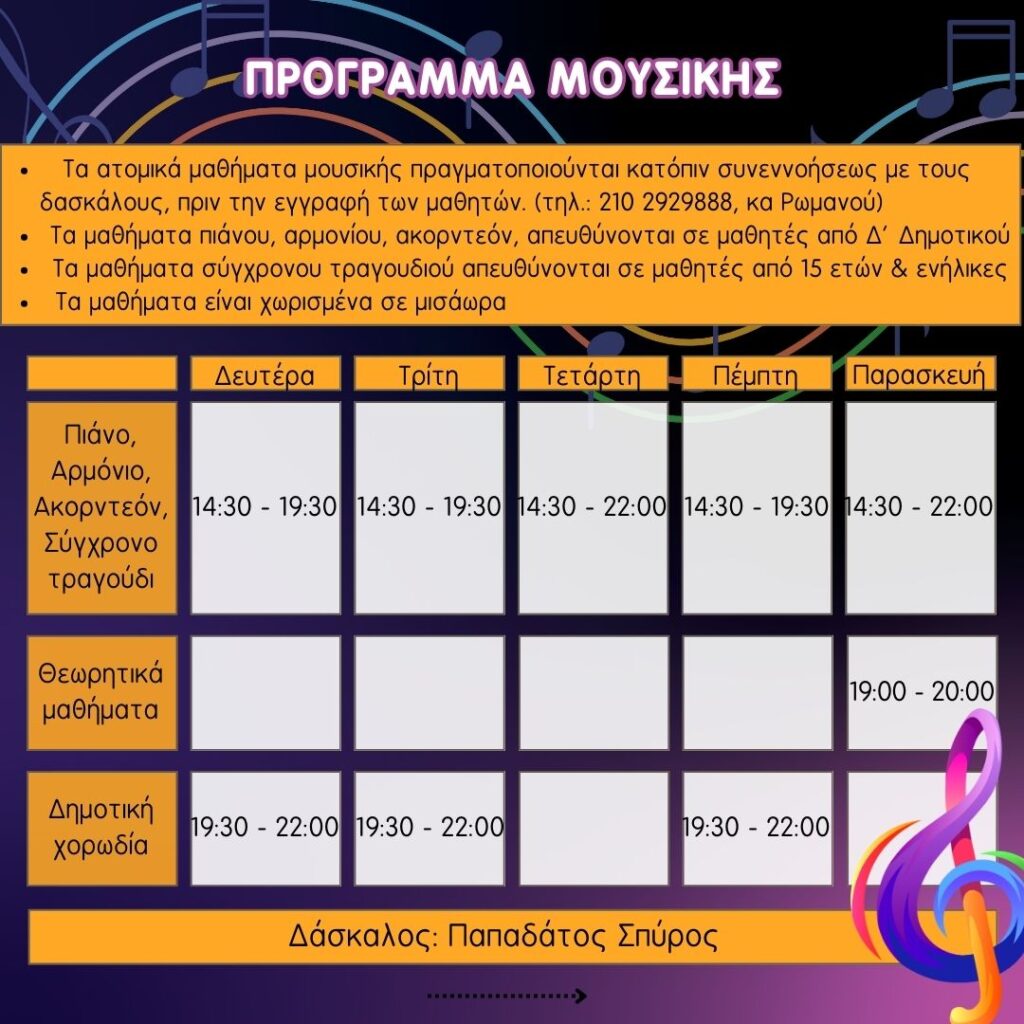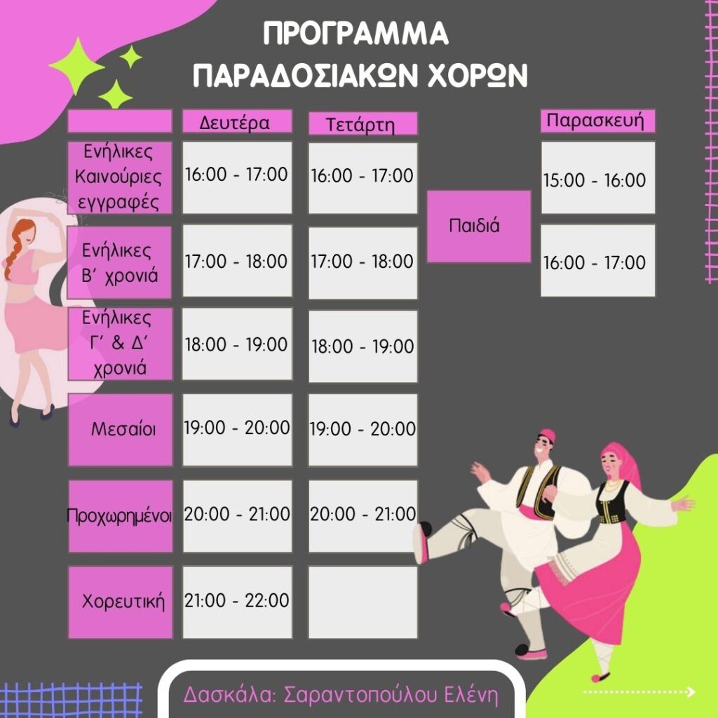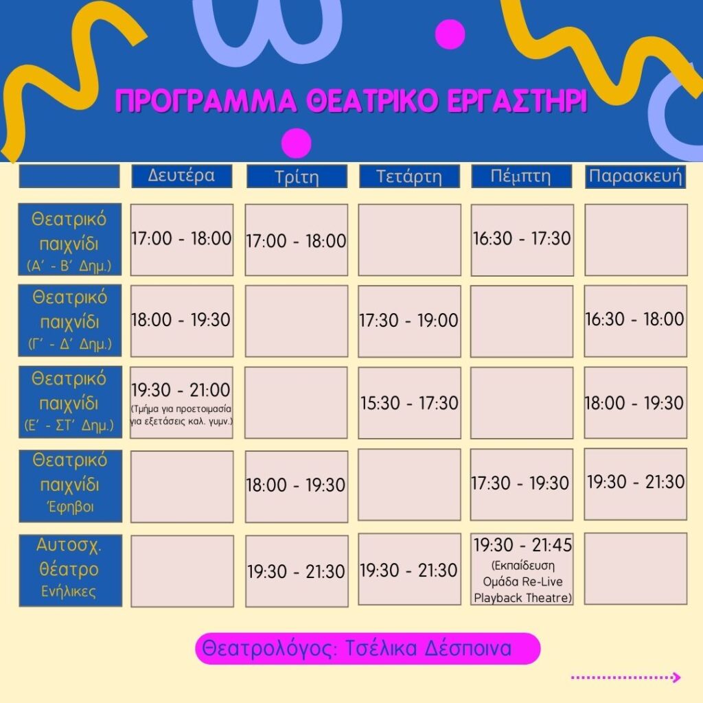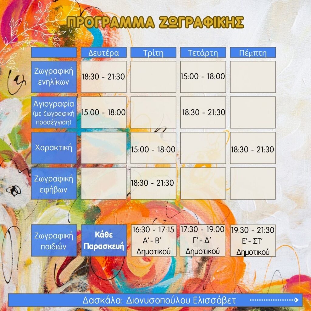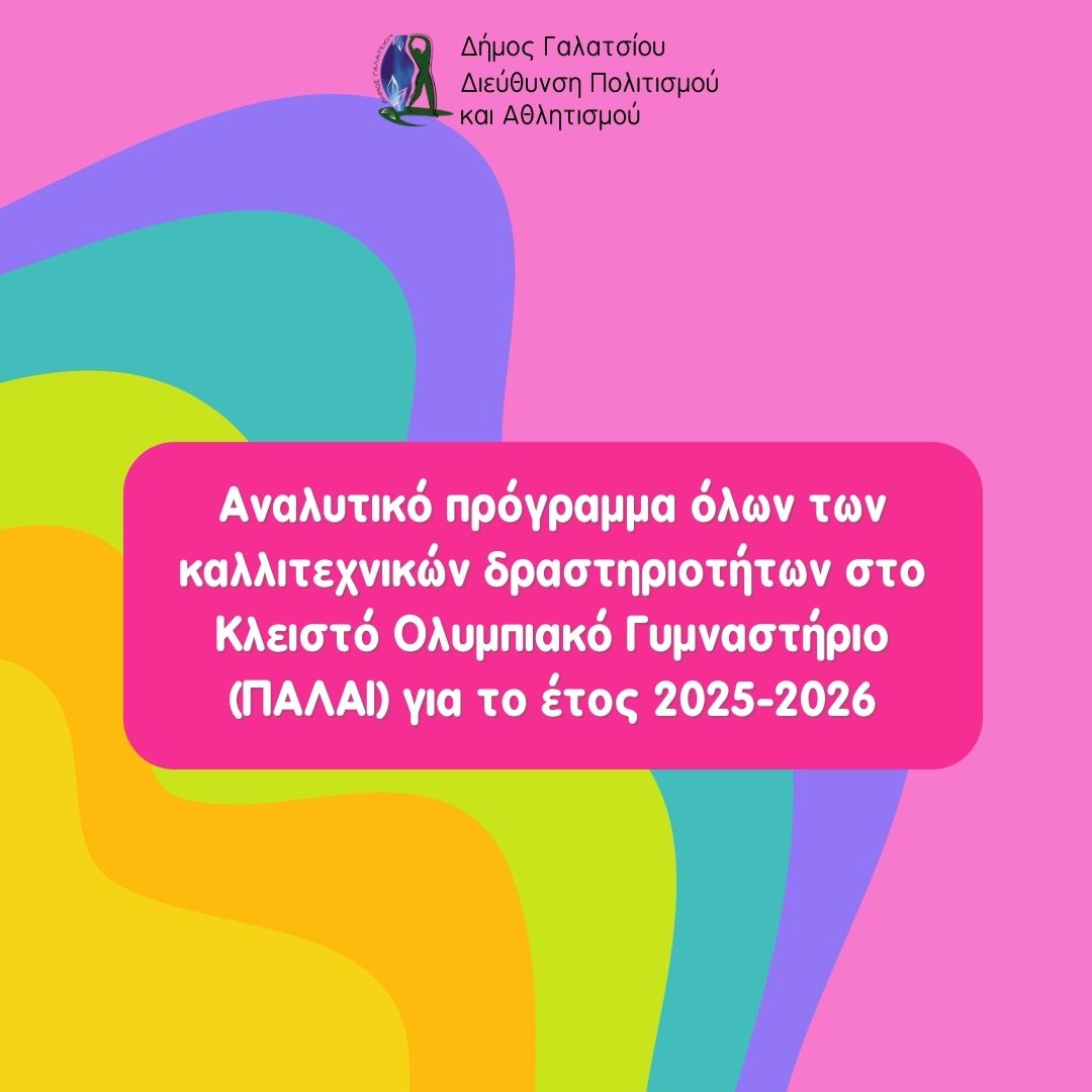 Αναλυτικό πρόγραμμα όλων των καλλιτεχνικών δραστηριοτήτων στο Κλειστό Ολυμπιακό Γυμναστήριο (ΠΑΛΑΙ) για το έτος 2025-2026