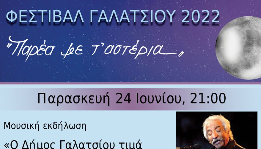 Ανοίγει αυλαία το Φεστιβάλ Γαλατσίου «Παρέα με τ αστέρια» την Παρασκευή 24 Ιουνίου, σε μια βραδιά που θα μας ταξιδέψει μουσικά ο μοναδικός Κώστας Χατζής.