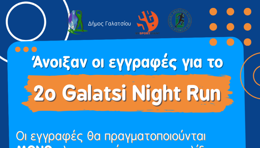 Το 2ο Galatsi Night Run αποτελεί διοργάνωση του Δήμου Γαλατσίου και πραγματοποιείται στο πλαίσιο της προώθησης της συμμετοχής των δημοτών και κατοίκων του στον αθλητισμό και τη σωματική άσκηση, καθώς και της ανάδειξης και αξιοποίησης του Κλειστού Ολυμπιακού Γυμναστηρίου Γαλατσίου – ΠΑΛΑΙ.