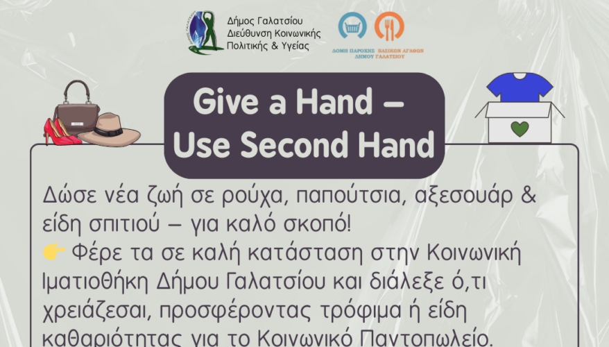Το Κοινωνικό Παντοπωλείο διοργανώνει μια ξεχωριστή δράση ανταλλαγής και διάθεσης second-hand ενδύματα – υποδήματα –αξεσουάρ – είδη σπιτιού, με ανταποδοτικό όφελος!
