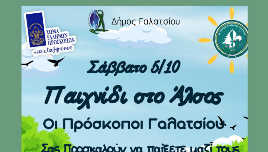 Αύριο, Σάββατο 5 Οκτωβρίου 2024, από τις 11:00 έως τις 15:00, παιχνίδι στο Άλσος Βεΐκου με τους Προσκόπους Γαλατσίου