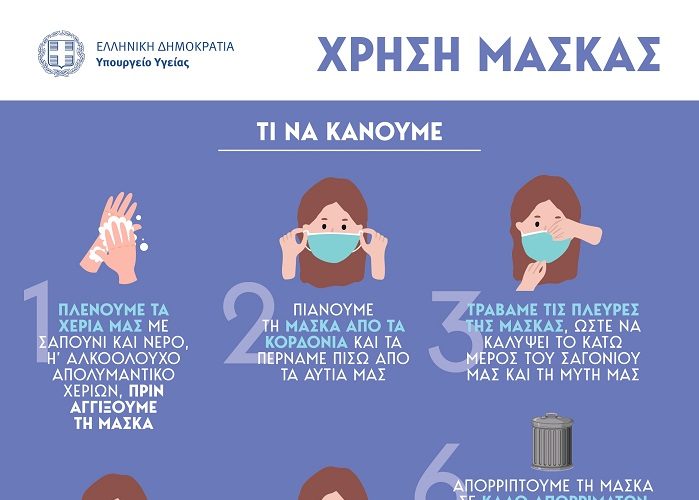 Επισημαίνεται ότι, η χρήση της μάσκας είναι ένα συμπληρωματικό μέτρο και δεν υποκαθιστά τους βασικούς κανόνες προστασίας, όπως η φυσική απόσταση >1,5μ, η αναπνευστική υγιεινή (χρήση χαρτομάντηλου για τον βήχα ή φτέρνισμα), η υγιεινή των χεριών και η αποφυγή αγγίγματος του προσώπου.