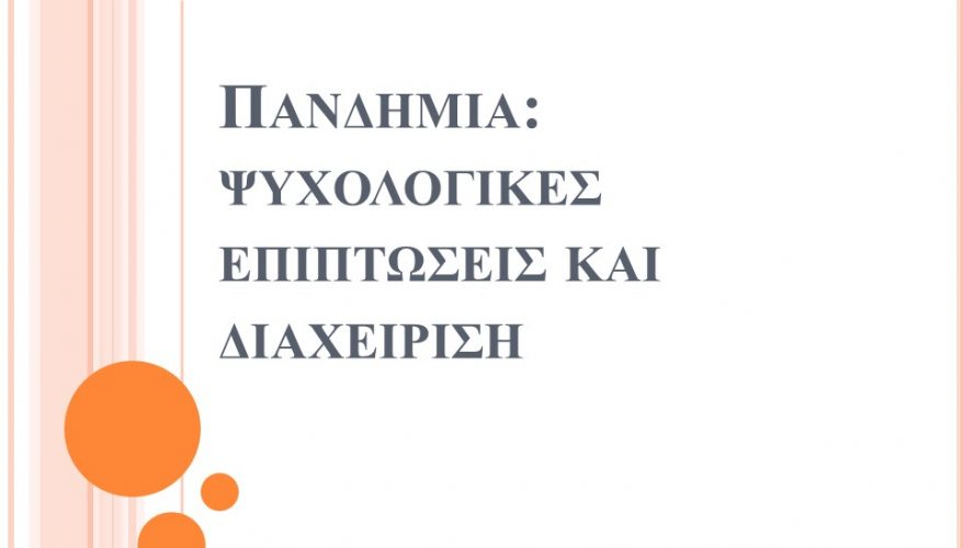 Το Κέντρο Κοινότητας Δήμου Γαλατσίου, αναγνωρίζοντας τις νέες συνθήκες που έχουν διαμορφωθεί εξαιτίας της πανδημίας COVID-19, προχώρησε στη διοργάνωση webinar με θέμα «Πανδημία: ψυχολογικές επιπτώσεις και διαχείριση», την Παρασκευή 12 Μαρτίου 2021, με την ψυχολόγο κα. Χριστίνα Παντελοπούλου, ειδικευμένη στη γνωσιακή συμπεριφορική ψυχοθεραπεία.