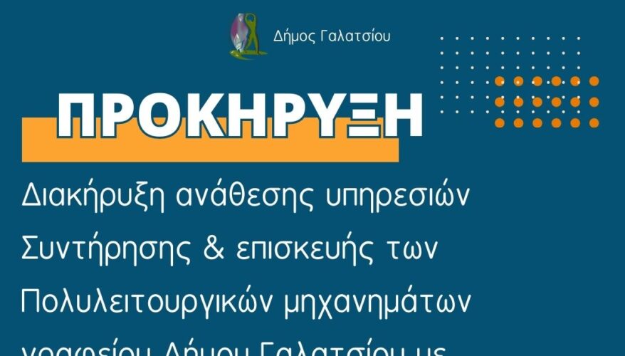 Διακήρυξη ανάθεσης υπηρεσιών Συντήρησης & επισκευής των Πολυλειτουργικών μηχανημάτων γραφείου Δήμου Γαλατσίου με Ανοικτή Διαδικασία μέσω ΕΣΗΔΗΣ