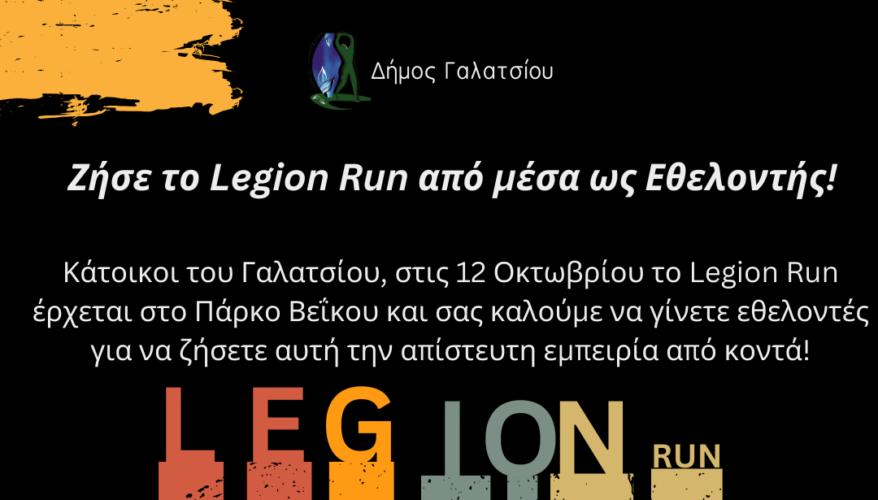 ✔Κάτοικοι του Γαλατσίου, στις 12 Οκτωβρίου το Legion Run έρχεται στο Πάρκο Βεΐκου και σας καλούμε να γίνετε εθελοντές για να ζήσετε αυτή την απίστευτη εμπειρία από κοντά!