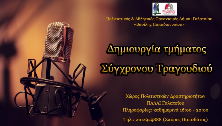 Δημιουργία τμήματος σύγχρονου τραγουδιού στον Χώρο Καλλιτεχνικών Δραστηριοτήτων στο ΠΑΛΑΙ
