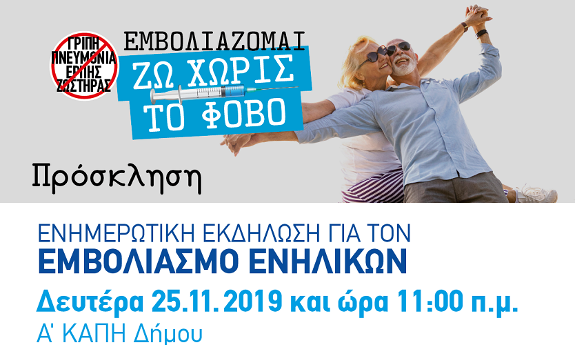 Η Κοινωνική Υπηρεσία και ο Οργανισμός Κοινωνικής Προστασίας και Αλληλεγγύης στο πλαίσιο των δράσεων του ΕΔΔΥΠΠΥ (Εθνικό Διαδημοτικό Δίκτυο Υγιών Πόλεων Προαγωγής Υγείας) διοργανώνουν ημερίδα για τον εμβολιασμό των ενηλίκων με την Ελληνική Εταιρεία Λοιμώξεων.