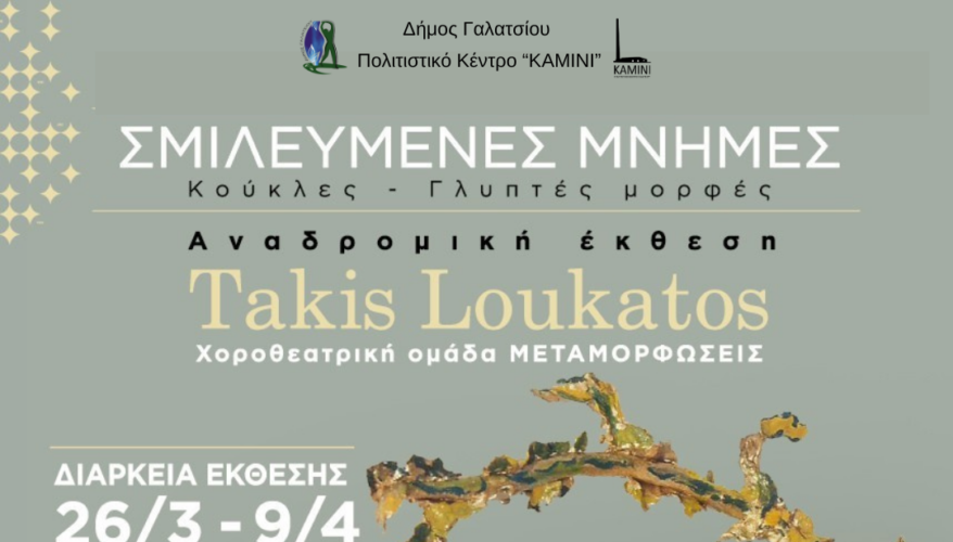 Ένα επετειακό αφιέρωμα στον Τάκη Λουκάτο και τη χοροθεατρική ομάδα του Μεταμορφώσεις, που συνδυάζει αναδρομική εικαστική έκθεση γλυπτών έργων του, παρουσίαση του 1ου θεατρικού έργου-βιβλίου του και χοροθεατρική παράσταση, θα πραγματοποιηθεί από 26 Μαρτίου έως 9 Απριλίου 2025, στο Πολιτιστικό Κέντρο Δήμου Γαλατσίου ΚΑΜΙΝΙ.