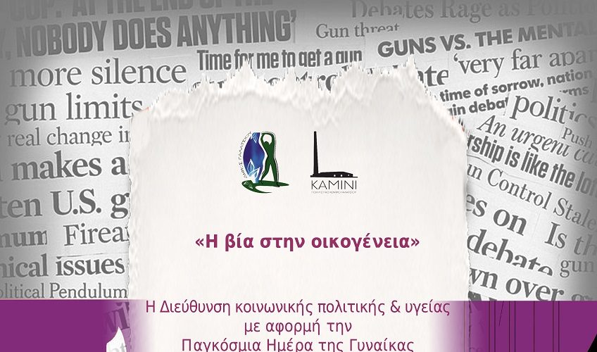 Η Διεύθυνση Κοινωνικής Πολιτικής και Υγείας με αφορμή την Παγκόσμια Ημέρα της Γυναίκας οργανώνει εκδήλωση με θέμα ” Η βία στην οικογένεια”.
