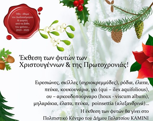 Η έκθεση των φυτών θα γίνει στο Πολιτιστικό Κέντρο του Δήμου Γαλατσίου ΚΑΜΙΝΙ από 6. 12. 2019 έως και 5.01.2020