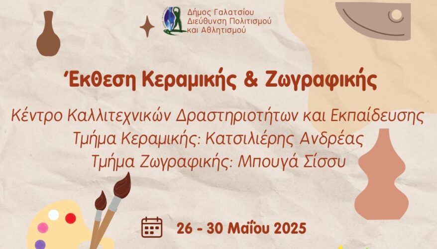 Έναρξη έκθεσης κεραμικής και ζωγραφικής, τη Δευτέρα 26 Μαΐου 2025, στο Κέντρο Καλλιτεχνικών Δραστηριοτήτων και Εκπαίδευσης, στο ΠΑΛΑΙ
