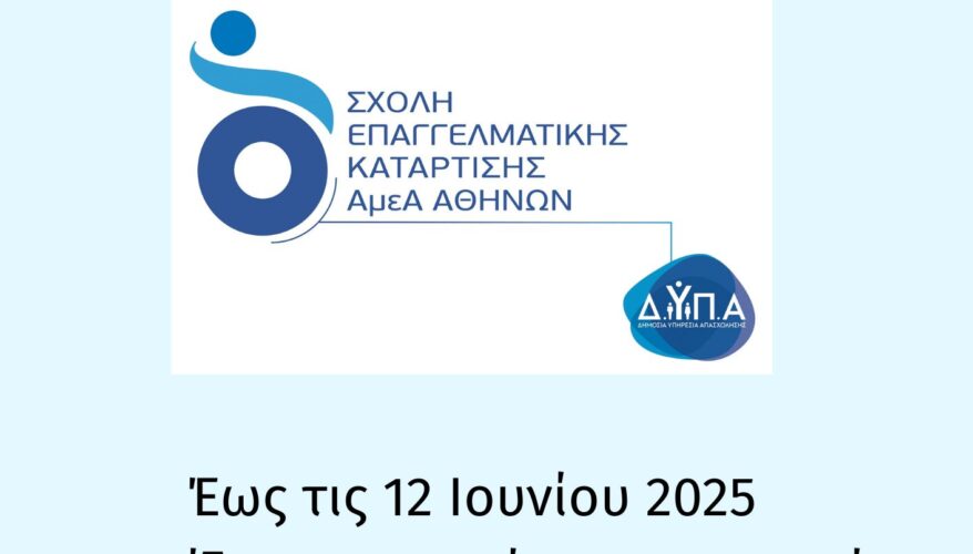 Έως τις 12 Ιουνίου οι αιτήσεις εισαγωγής 117 νέων καταρτιζόμενων στη Σχολή Επαγγελματικής Κατάρτισης ΑμεΑ Αθήνας της ΔΥΠΑ, για το σχολικό έτος 2025-2026.