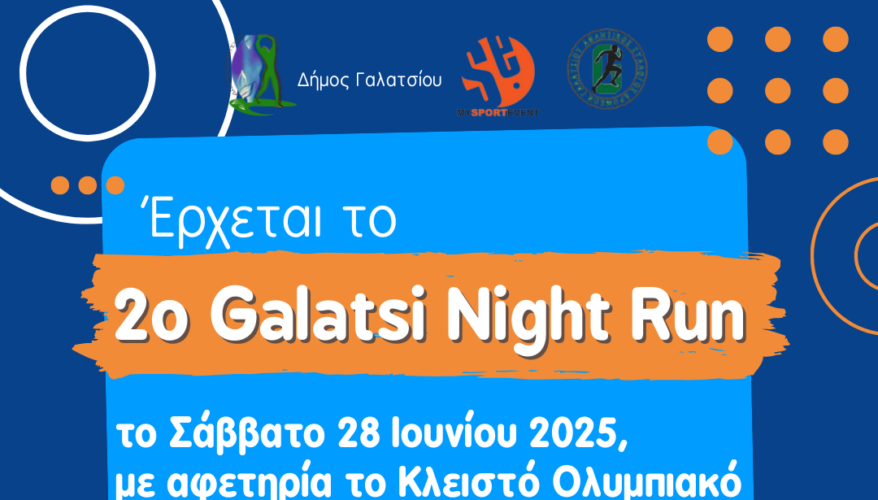 Ο Δήμος Γαλατσίου, στο πλαίσιο της προώθησης της συμμετοχής των δημοτών και κατοίκων του στον αθλητισμό και τη σωματική άσκηση, καθώς και της ανάδειξης και αξιοποίησης του Κλειστού Ολυμπιακού Γυμναστηρίου Γαλατσίου – ΠΑΛΑΙ, προκηρύσσει αγώνα νυχτερινού τρεξίματος, το Σάββατο 28 Ιουνίου 2025, με την επωνυμία “2ο Galatsi Night Run“. Η διοργάνωση θα πραγματοποιηθεί με την υποστήριξη των Galatsi Runners (Αθλητικός Σύλλογος Δρομέων Γαλατσίου). Την τεχνική επιμέλεια και υλοποίηση της διοργάνωσης έχει αναλάβει η MySportEvent.