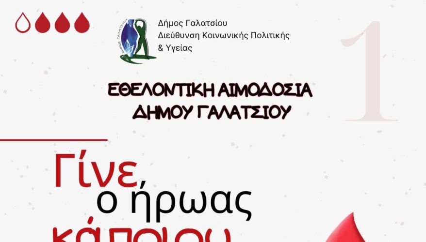 Την Πέμπτη 10 Ιουλίου 2025, 09:30 με 13:15, θα πραγματοποιηθεί εθελοντική αιμοδοσία κατόπιν ραντεβού, στο ισόγειο του Δημαρχείου, στην αίθουσα «Θάνος Κωτσόπουλος».