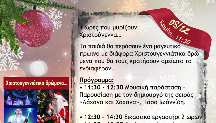 8/12/2018 11:30 Είσοδος Ελέυθερη Καμίνι Καμίνι Διοργανωτής: Δήμος Γαλατσίου Χειμερινό Φεστιβάλ