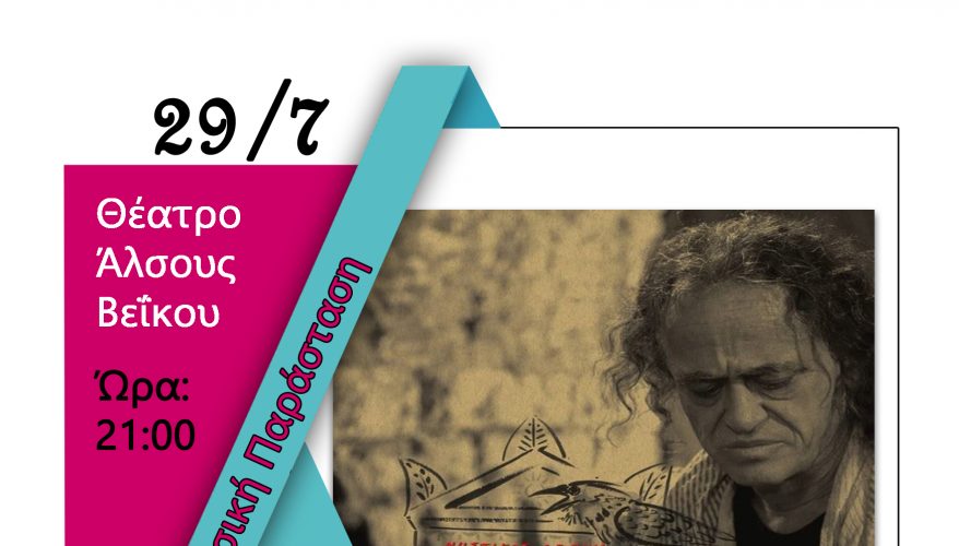 29/7/2019 21:00 Είσοδος Ελέυθερη Θέατρο Άλσους Βεΐκου Διοργανωτής: Πολιτιστικός και Αθλητικός Οργανισμός Δήμου Γαλατσίου "Βασίλης Παπαδιονυσίου" σε συνδιοργάνωση με τον Δήμο Γαλατσίου Καλοκαιρινό Φεστιβάλ