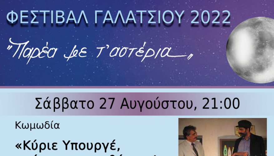 27/8/2022 21:00 ΕΛΕΥΘΕΡΗ ΕΙΣΟΔΟΣ Ανοιχτό Θέατρο Άλσους Βεΐκου Διοργανωτής: ΔΗΜΟΣ ΓΑΛΑΤΣΙΟΥ Καλοκαιρινό Φεστιβάλ