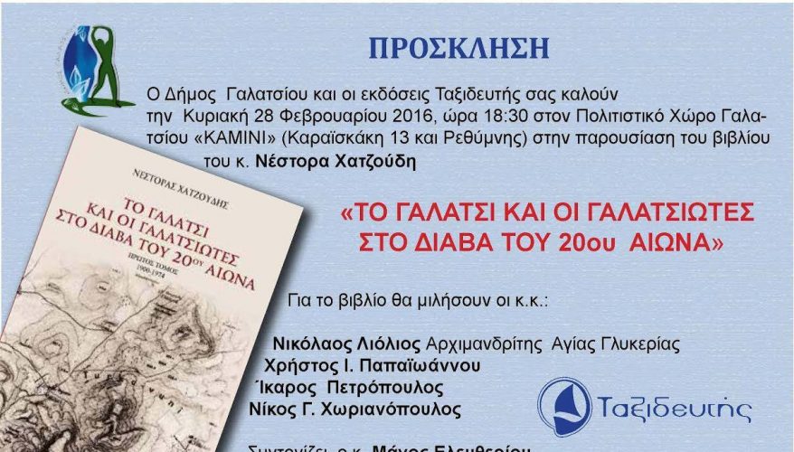 Παρουσίαση του βιβλίου του κ. Νέστορα Χατζούδη με θέμα «Το Γαλάτσι και οι Γαλατσιώτες στο διάβα του 20ου αιώνα»