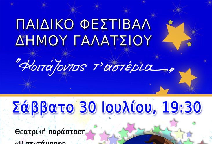 30/7/2022 19:30 ΕΛΕΥΘΕΡΗ ΕΙΣΟΔΟΣ Ανοιχτό Γήπεδο basket ΑΛΣΟΣ ΒΕΪΚΟΥ (είσοδος Β΄) Διοργανωτής: ΔΗΜΟΣ ΓΑΛΑΤΣΙΟΥ Παιδικό Φεστιβάλ