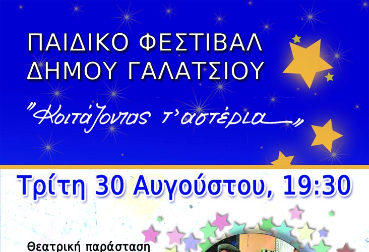 30/8/2022 19:30 ΕΛΕΥΘΕΡΗ ΕΙΣΟΔΟΣ Ανοιχτό Γήπεδο basket ΑΛΣΟΣ ΒΕΪΚΟΥ (είσοδος Β΄) Διοργανωτής: ΔΗΜΟΣ ΓΑΛΑΤΣΙΟΥ Παιδικό Φεστιβάλ