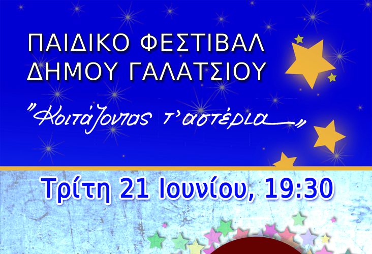 21/6/2022 19:30 ΕΛΕΥΘΕΡΗ ΕΙΣΟΔΟΣ Ανοιχτό Γήπεδο basket ΑΛΣΟΣ ΒΕΪΚΟΥ (είσοδος Β΄) Διοργανωτής: ΔΗΜΟΣ ΓΑΛΑΤΣΙΟΥ Παιδικό Φεστιβάλ