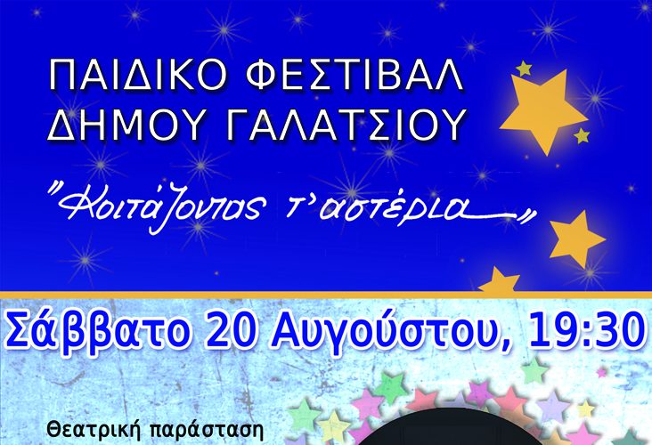 20/8/2022 19:30 ΕΛΕΥΘΕΡΗ ΕΙΣΟΔΟΣ Ανοιχτό Γήπεδο basket ΑΛΣΟΣ ΒΕΪΚΟΥ (είσοδος Β΄) Διοργανωτής: ΔΗΜΟΣ ΓΑΛΑΤΣΙΟΥ Παιδικό Φεστιβάλ