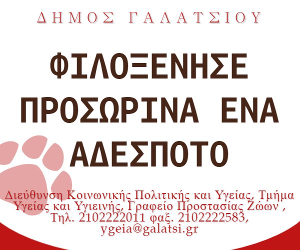 Στην ιστοσελίδα του Δήμου Γαλατσίου μπορείς να δεις τα διαθέσιμα ζώα,πληροφορίες για την φιλοξενία και για την υιοθεσία ζώων.