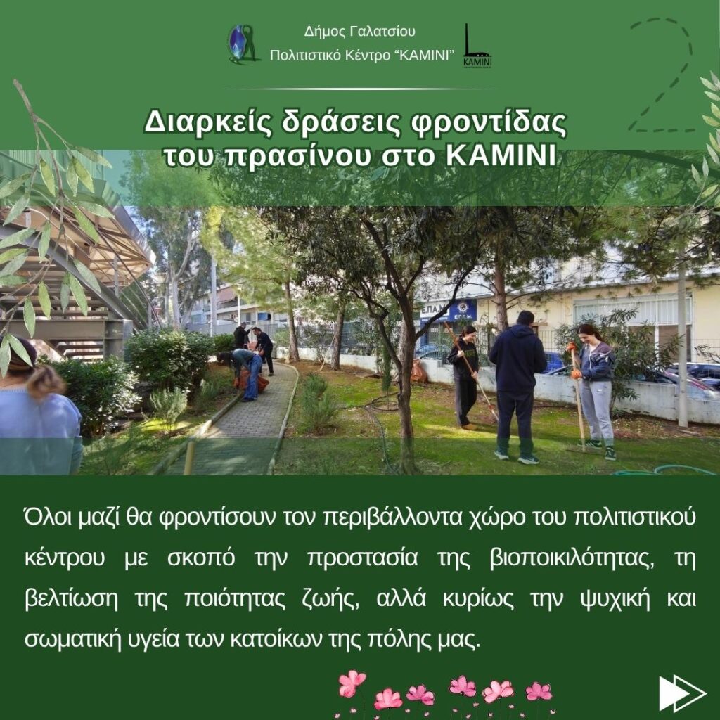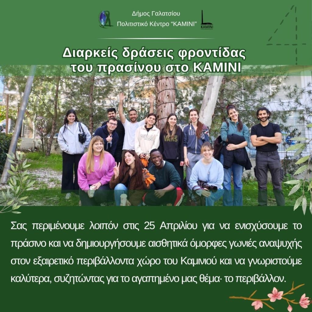 Σας περιμένουμε λοιπόν το Σάββατο 25 Απριλίου 2026, στις 10 το πρωί, για να ενισχύσουμε το πράσινο και να δημιουργήσουμε αισθητικά όμορφες γωνιές αναψυχής στον εξαιρετικό περιβάλλοντα χώρο του Καμινιού και να γνωριστούμε καλύτερα, συζητώντας για το αγαπημένο μας θέμα το περιβάλλον.