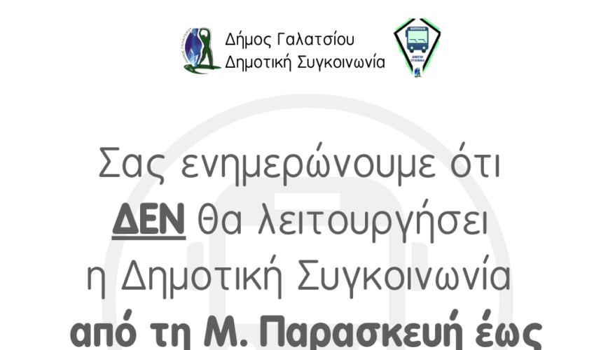 Η Δημοτική Συγκοινωνία δεν θα λειτουργήσει από τη Μεγ. Παρασκευή έως και την Τρίτη του Πάσχα