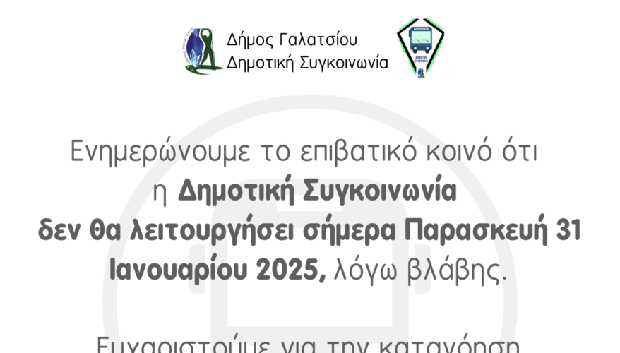 Η Δημοτική Συγκοινωνία δεν θα λειτουργήσει σήμερα Παρασκευή 31 Ιανουαρίου 2025, λόγω βλάβης