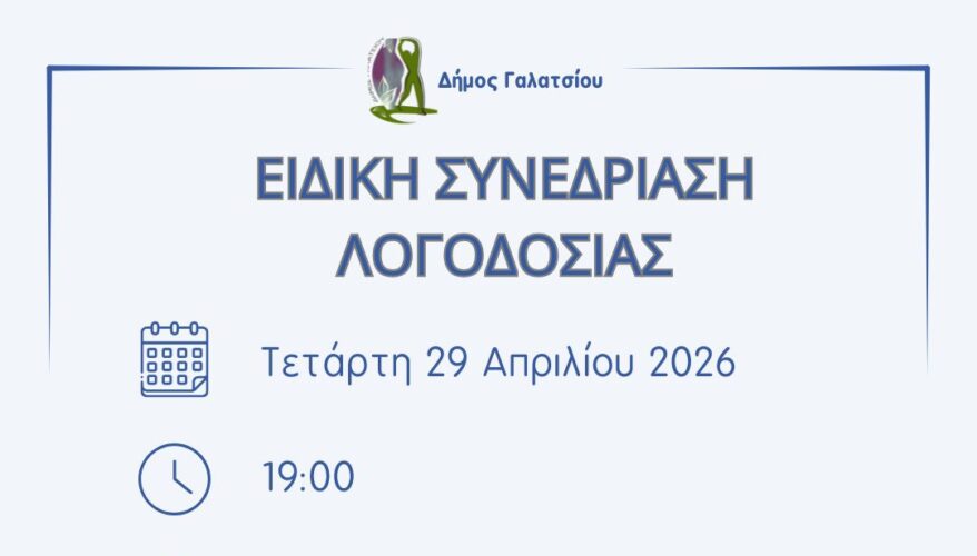 Σας ενημερώνουμε ότι η Ειδική Συνεδρίαση Λογοδοσίας της Τετάρτης 29 Απριλίου 2026, στις 19:00, θα πραγματοποιηθεί στο: