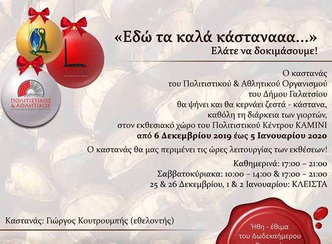 Η πιο μεγάλη και υπέροχη έκθεση των Χριστουγέννων λειτουργεί στο Καμίνι μας! Όλα τα ήθη και τα έθιμα του 12ήμερου παρουσιάζονται στη στοά του Πολιτιστικού μας Κέντρου, από 6.12.2019 έως και 5.01.2020.