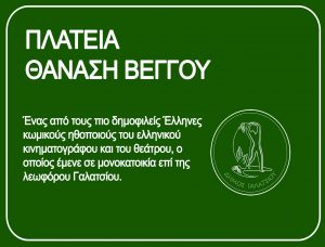 Έλληνας κωμικός ηθοποιός του κινηματογράφου και του θεάτρου, ο οποίος και έμενε σε μονοκατοικία επί της λεωφόρου Γαλατσίου. Ο Θανάσης Βέγγος, Νέο Φάληρο 29 Μαΐου 1927 – Αθήνα, 3 Μαΐου 2011, ήταν Έλληνας κωμικός ηθοποιός του κινηματογράφου και του θεάτρου και σκηνοθέτης. Επίσης υπήρξε ιδρυτής της εταιρείας ΘΒ Ταινίες Γέλιου. Το πραγματικό του επώνυμο ήταν Βέγκος και όπως είχε πει, το έγραφε με “γγ” όταν έγινε ηθοποιός γιατί φαινόταν καλύτερα στο μάτι. Έχει παίξει σε 126 ταινίες, σε 52 από τις οποίες ως πρωταγωνιστής και έχει σκηνοθετήσει (πρωταγωνιστώντας ταυτόχρονα) ακόμη επτά ταινίες. Θεωρείται ένας από τους πιο δημοφιλείς κωμικούς του ελληνικού κινηματογράφου, ενώ μέχρι και το τέλος της ζωής του συνέχιζε να εμφανίζεται σε ταινίες, στην τηλεόραση και το θέατρο. Ο Θανάσης Βέγγος νοσηλευόταν από τις 19 Δεκεμβρίου 2010 στην εντατική μονάδα του νοσοκομείου Ερυθρός Σταυρός λόγω εγκεφαλικού επεισοδίου, όπου και απεβίωσε στις 3 Μαΐου 2011, λίγο πριν συμπληρώσει τα 84 χρόνια του. Η νεκρώσιμος ακολουθία εψάλη στον Ιερό Ναό της Αγίας Μαρίνας στο Θησείο την επόμενη, στις 4 Μαΐου, με παρουσία πολλών επισήμων και φίλων. Τάφηκε στην Αμοργό, τόπο καταγωγής της μητέρας του και της γιαγιάς του. Θα μείνει πάντα γνωστός ως «ο καλός μας άνθρωπος».