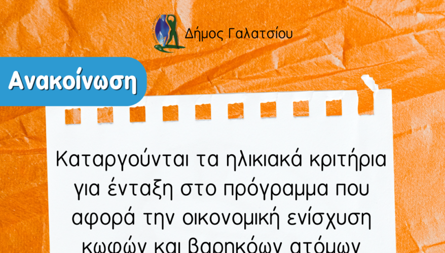 Σας ενημερώνουμε για την ΚΥΑ με αρ. 6133/2025 (ΦΕΚ 2086 Β’ /30-04-2025), που αφορά στην οικονομική ενίσχυση κωφών και βαρηκόων ατόμων, σύμφωνα με την οποία καταργούνται τα ηλικιακά κριτήρια για ένταξη στο πρόγραμμα.