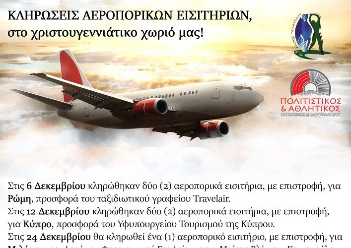 ΚΛΗΡΩΣΕΙΣ ΑΕΡΟΠΟΡΙΚΩΝ ΕΙΣΙΤΗΡΙΩΝ, στο χριστουγεννιάτικο χωριό μας!
