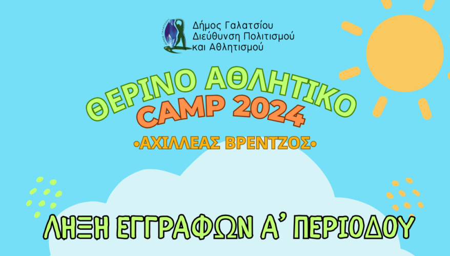Ο Δήμος Γαλατσίου σας ενημερώνει ότι οι εγγραφές για την Α’ περίοδο του Αθλητικού Camp 2024 λήγουν σήμερα Παρασκευή 31 Μαΐου 2024 και ώρα 13:00.