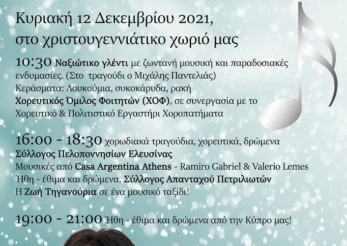 εκδηλώσεις την Κυριακή 12 Δεκεμβρίου 2021 στο χριστουγεννιάτικο χωριό