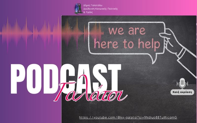 Η Διεύθυνση Κοινωνικής Πολιτικής και Υγείας του Δήμου Γαλατσίου εγκαινιάζει μια νέα σειρά 🎙podcast στα οποία σε επιλεγμένα ηχητικά επεισόδια συζητούνται σύγχρονα κοινωνικά ζητήματα, καθώς και θέματα προαγωγής δημόσιας υγείας και πρόληψης — με στόχο την ενημέρωση, ευαισθητοποίηση και ενεργό συμμετοχή των πολιτών σε θέματα που αφορούν την καθημερινότητά μας και την υγιή ζωή.