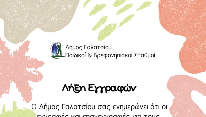 Οι εγγραφές και επανεγγραφές για τους Παιδικούς / Βρεφονηπιακούς Σταθμούς λήγουν σήμερα Παρασκευή 31 Μαΐου 2024, το βράδυ.