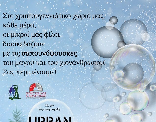 Στο χριστουγεννιάτικο χωριό μας, κάθε μέρα, οι μικροί μας φίλοι διασκεδάζουν με τις σαπουνόφουσκες του μάγου και του χιονάνθρωπου!