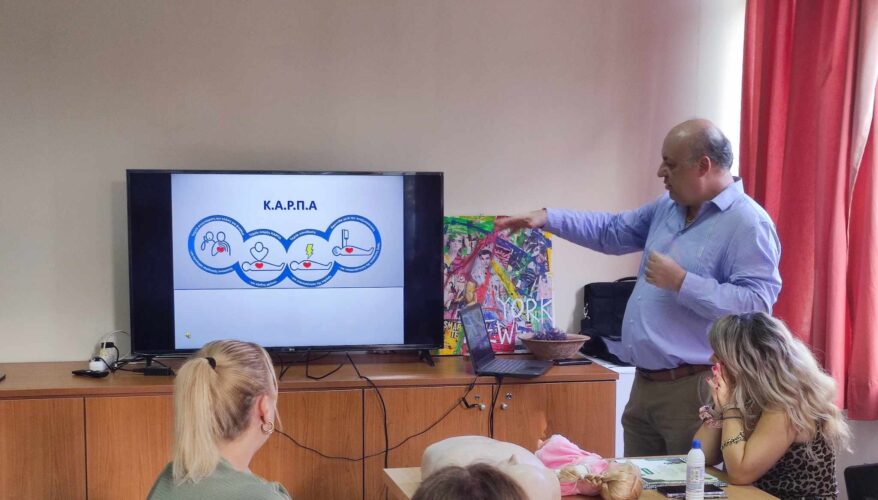 Στη συνέχεια με την κούκλα εκπαίδευσης ΚΑΡΠΑ οι συμμετέχοντες διδάσκονται στην πράξη την Καρδιοπνευμονική Αναζωογόνηση (ΚΑΡΠΑ).