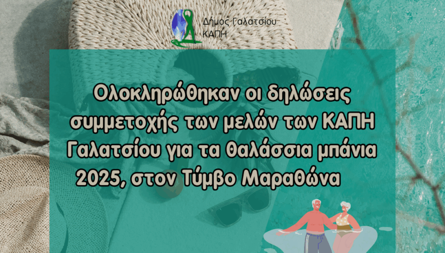 Ολοκληρώθηκαν οι δηλώσεις συμμετοχής των μελών των ΚΑΠΗ Γαλατσίου για τα θαλάσσια μπάνια 2025.