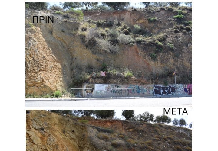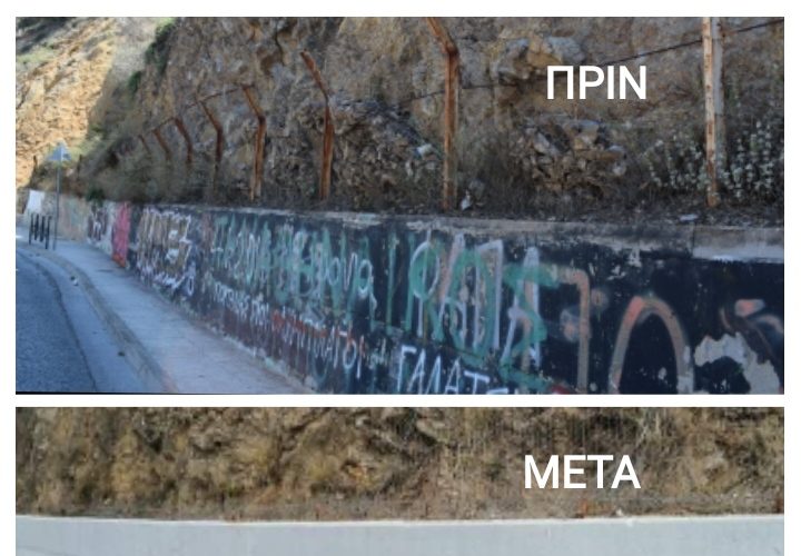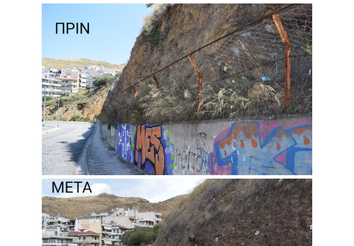 Το έργο αυτό έχει στόχο την προστασία του περιβάλλοντος και την ασφάλεια των πολιτών από τυχόν καταπτώσεις βράχων και κατολισθήσεις πρανών στην περιοχή. Τοποθετήθηκαν νέοι φράκτες εύκαμπτοι μεταλλικοί συγκράτησης λίθων / ογκολίθων (barriers) μέγιστου φορτίου, πλέγματα επικάλυψης και προστατευτικά τοιχεία εξ οπλισμένου σκυροδέματος με μοναδικό σκοπό την ασφάλεια των διερχομένων πεζών και οχημάτων.