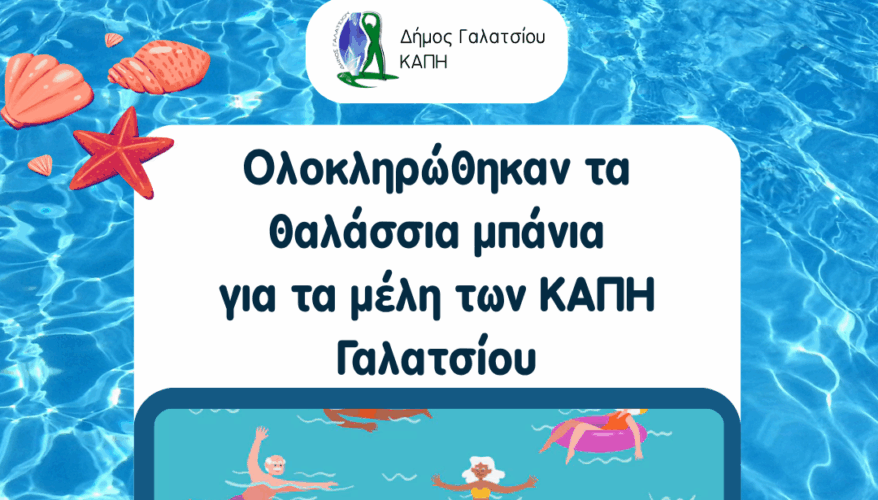 Με επιτυχία ολοκληρώθηκε το πρόγραμμα θαλάσσιων μπάνιων που διοργάνωσαν τα ΚΑΠΗ Γαλατσίου για τα μέλη τους. Η μεγάλη συμμετοχή, που έφτασε τα 300 άτομα, οδήγησε στην υλοποίηση του προγράμματος σε δύο περιόδους, κατά τις οποίες κάθε συμμετέχων πραγματοποίησε 12 μπάνια.