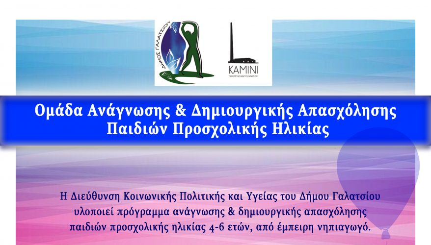 Η Διεύθυνση Κοινωνικής Πολιτικής και Υγείας πρόκειται να διεξάγει πρόγραμμα ανάγνωσης & δημιουργικής απασχόλησης παιδιών προσχολικής ηλικίας 4-6 ετών, κατά προτεραιότητα για τα παιδιά ωφελούμενων της Κοινωνικής Υπηρεσίας και των Κοινωνικών Προγραμμάτων και Δομών (Κοινωνικό Παντοπωλείο, Κοινωνικό Συσσίτιο, Κοινωνικό Φαρμακείο, Πρόγραμμα ΚΕΑ).