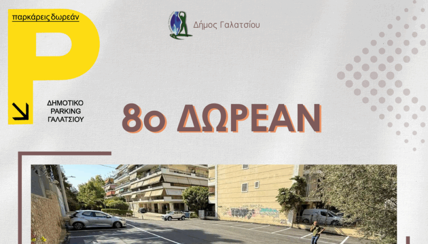 Με στόχο ένα πιο λειτουργικό και ανθρώπινο Γαλάτσι, ο Δήμος παραδίδει σήμερα το 8ο δωρεάν δημοτικό πάρκινγκ, το οποίο βρίσκεται στην οδό Αγίου Σπυρίδωνος, πλησίον της ΕΥΔΑΠ. Το νέο πάρκινγκ περιλαμβάνει 31 θέσεις στάθμευσης, ελεύθερες και προσβάσιμες για όλους τους πολίτες.