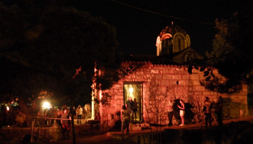 Ο Πρόεδρος του Πολιτιστικού και Αθλητικού Οργανισμού «Βασίλης Παπαδιονυσίου» Μάνος Ελευθερίου, αφού ευχαρίστησε τον κόσμο για τη συμμετοχή του στην εκδήλωση, αλλά και για την αγάπη που έχει δείξει για την Ομορφοκκλησιά, τόνισε ότι: «Αυτό το κομψοτέχνημα, που βλέπετε μπροστά σας, κτίστηκε πριν από πολλούς αιώνες. Η αρχιτεκτονική ομορφιά του ναού, αλλά και οι εξαιρετικές τοιχογραφίες του, του χάρισαν το προσωνύμιο …Ομορφοκκλησιά. Κυρίως όμως λόγω του μοναδικού Παντοκράτορα, τον οποίο εκθειάζει ο Φώτης Κόντογλου ως τον ομορφότερο Παντοκράτορα του κόσμου. Κι από πάνω του η Σελάνα, η Σελήνη, η Πανσέληνος, η Μήνη…Η Σελήνη είναι η μία από τις δυο αγαπημένες αδελφές του Ήλιου, σύμφωνα με τη μυθολογία μας, της οποίας ο φυσικός χώρος είναι η νύχτα».