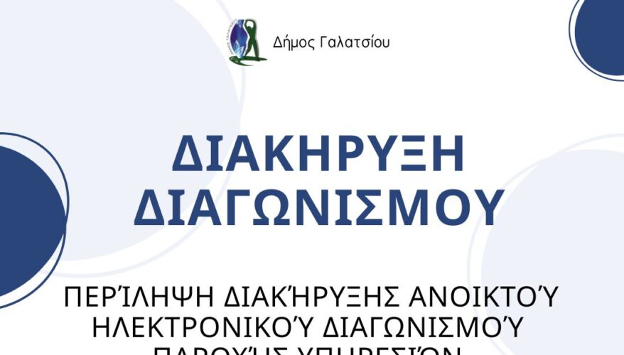 Ολόκληρη η διακήρυξη, συμπεριλαμβανομένης και της από 15.12.2025 μελέτης δημοσιεύεται στην ιστοσελίδα του Κεντρικού Ηλεκτρονικού Μητρώου Δημοσίων Συμβάσεων (Κ.Η.Μ.ΔΗ.Σ.) και της διαδικτυακής πύλης του Εθνικού Συστήματος Ηλεκτρονικών Δημοσίων Συμβάσεων ( Ε.Σ.Η.ΔΗ.Σ.) (με συστημικό αύξοντα αριθμό (409009) καθώς και στην ιστοσελίδα του Δήμου: http://www.galatsi.gov.gr .