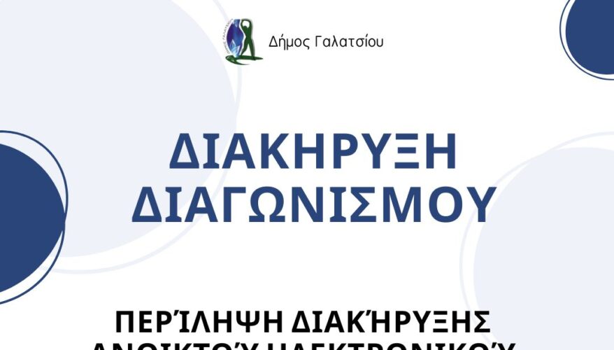 Ολόκληρη η διακήρυξη, συμπεριλαμβανομένης και της από 04.11.2024 μελέτης δημοσιεύεται στην ιστοσελίδα του Κεντρικού Ηλεκτρονικού Μητρώου Δημοσίων Συμβάσεων (Κ.Η.Μ.ΔΗ.Σ.) και της διαδικτυακής πύλης του Εθνικού Συστήματος Ηλεκτρονικών Δημοσίων Συμβάσεων ( Ε.Σ.Η.ΔΗ.Σ.) (με συστημικό αύξοντα αριθμό 385629) καθώς και στην ιστοσελίδα του Δήμου: http://www.galatsi.gov.gr.